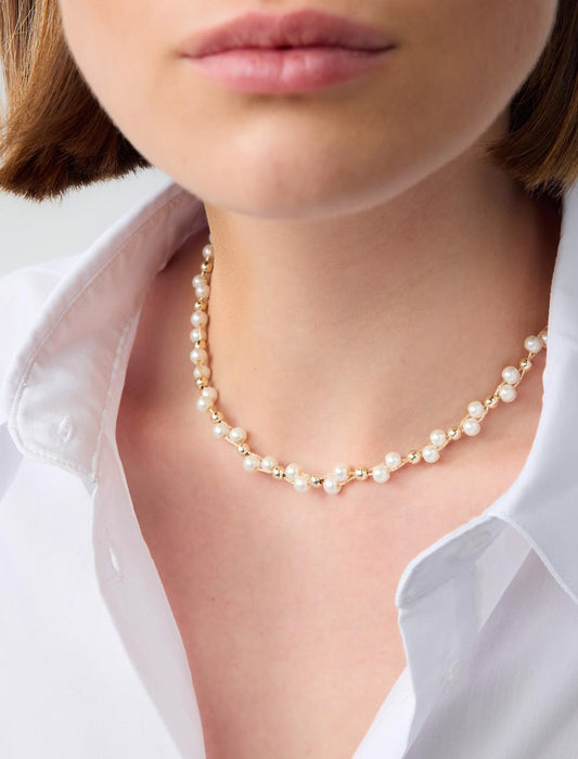Adjustable Necklace with Pearl Detail and Gold Plating