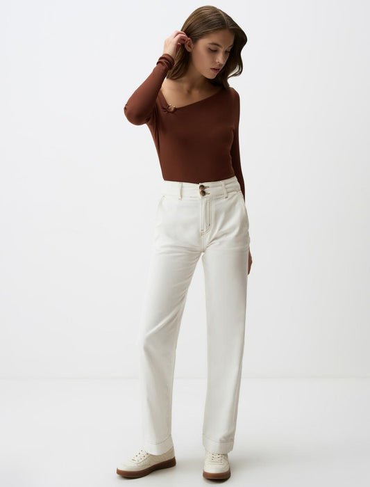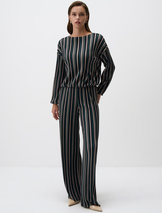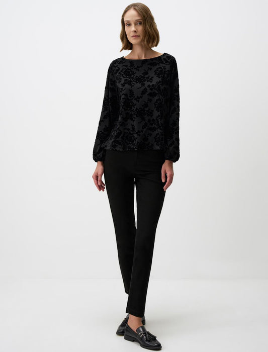 Boat Neck Relaxed Fit Long Sleeve Blouse