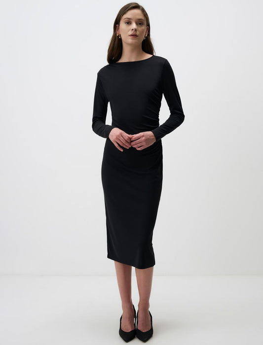 Asymmetric Neckline Relaxed Fit Knitted Midi Dress