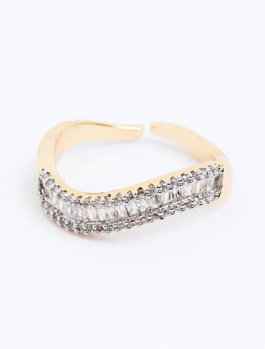 Asymmetric Patterned In-Line Ring with Shiny Stones