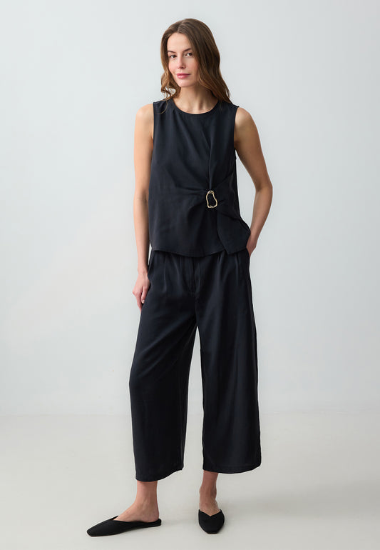 Round Neck Sleeveless Woven Linen Blouse