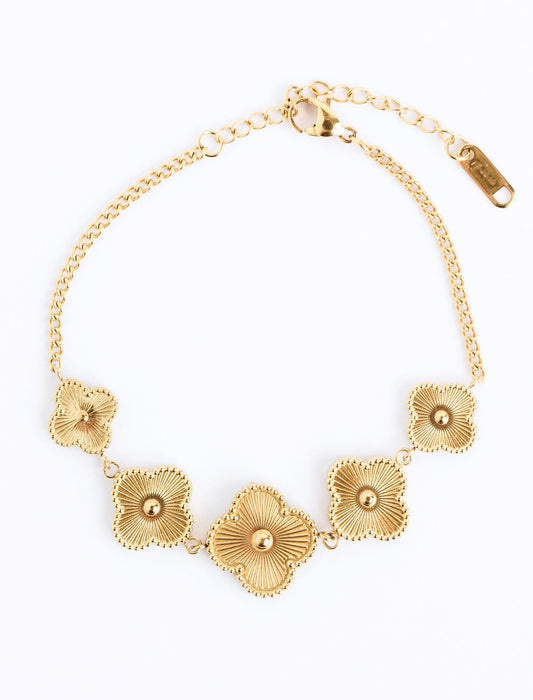 Clover-shaped Stone-detailed Adjustable Bracelet