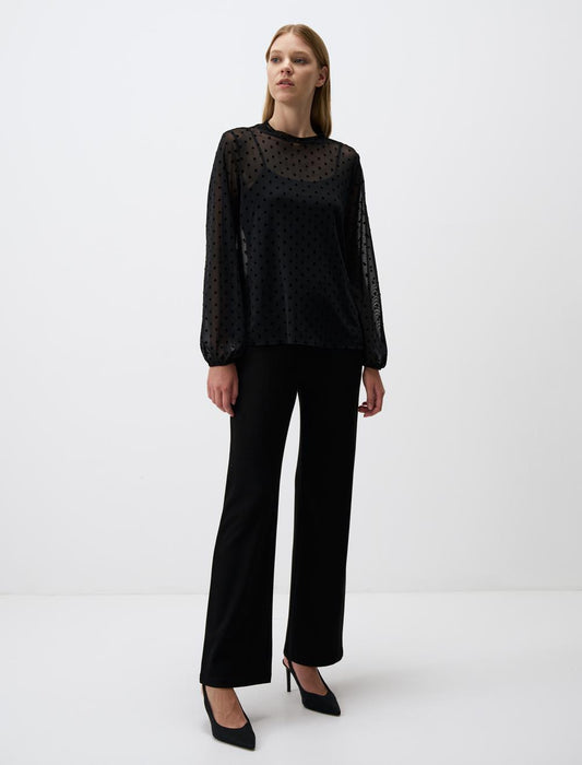 Crew Neck Long Sleeve Relaxed Fit Blouse