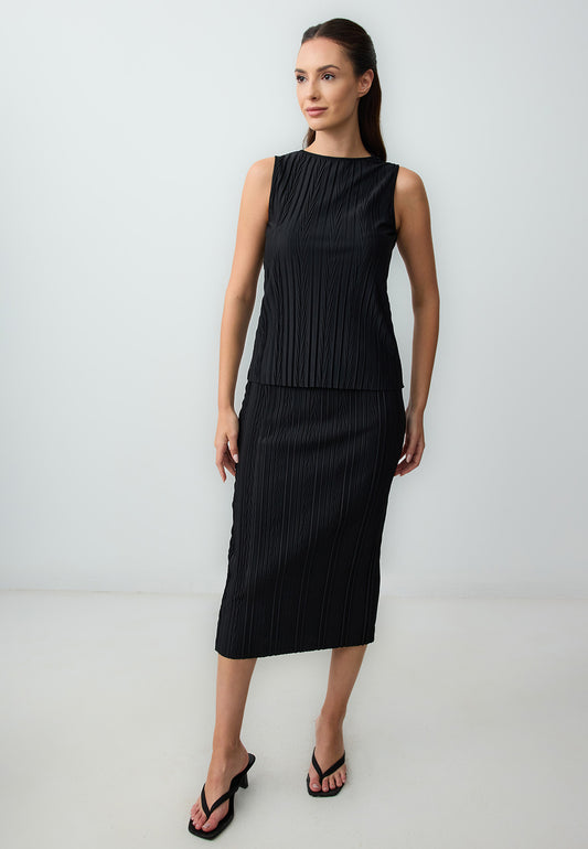 Crew Neck Pleated Sleeveless Knitted Blouse