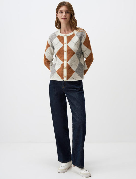 Diamond Patterned Narrow Cut Sweater Cardigan