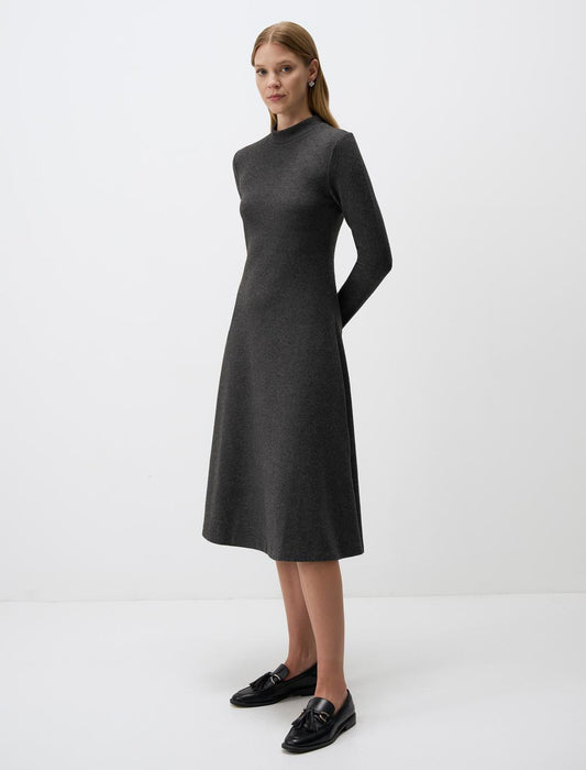 Half Turtleneck Long Sleeved Elegant Midi Dress