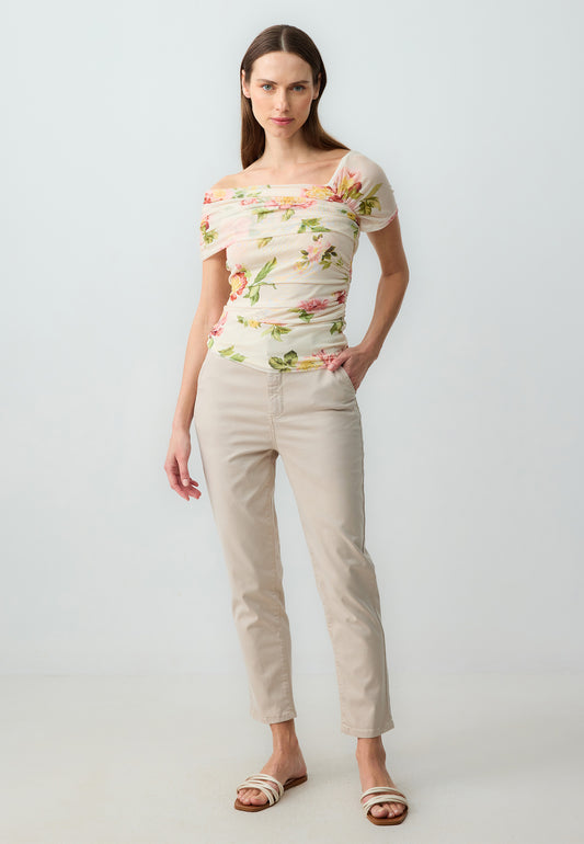 Zero Neck Slim Fit Patterned Blouse