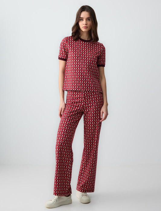 Crew Neck Short Sleeve Geometric Patterned Knitted Blouse