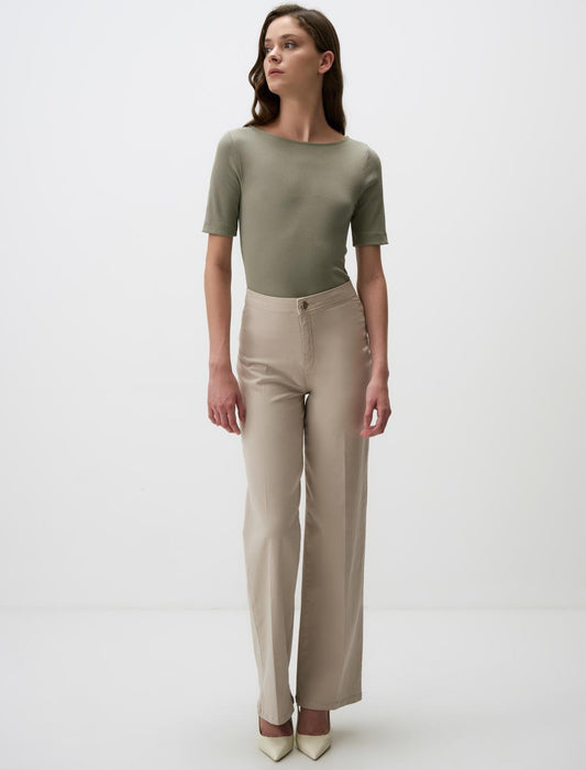Boat Neck Slim Fit Short Sleeve Blouse