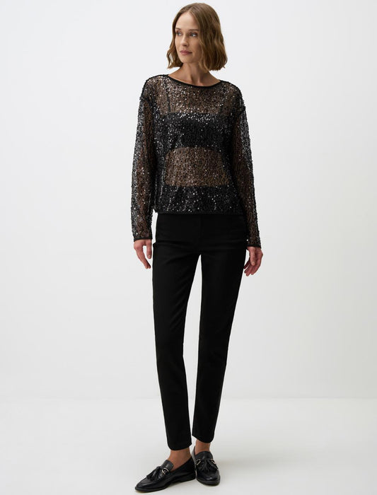 Boat Neck Relaxed Fit Long Sleeve Sequin Blouse