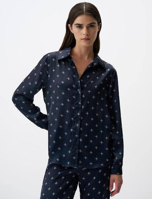 Long Sleeved Patterned Satin Shirt
