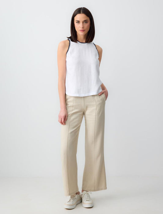 Crew Neck Sleeveless Embroidered Linen Blouse