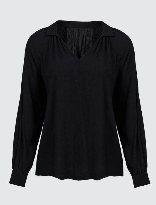 V-Neck Relaxed Fit Long Sleeve Woven Blouse