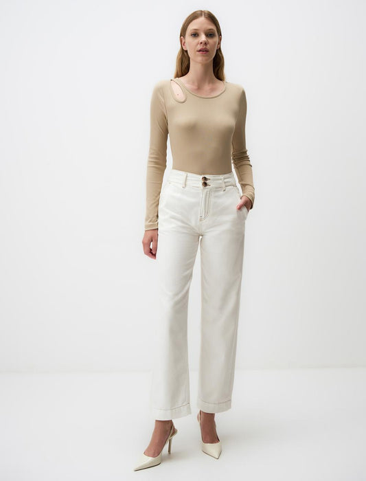 Slim Fit Cowl neck Knitted Ecru Blouse