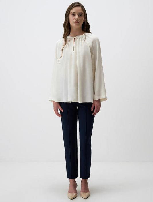 Crew Neck Relaxed Fit Long Sleeve Blouse