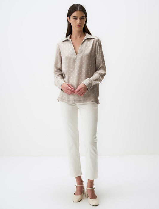Polo Collar Long Sleeve Satin Blouse