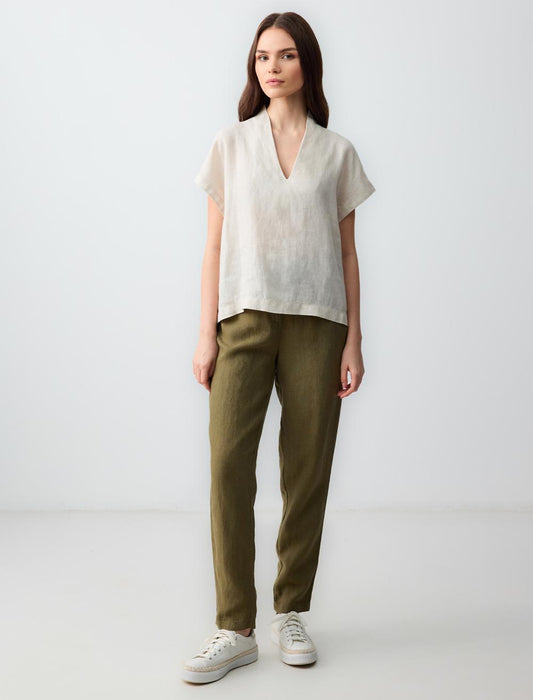 Round Neck Sleeveless Linen Blouse