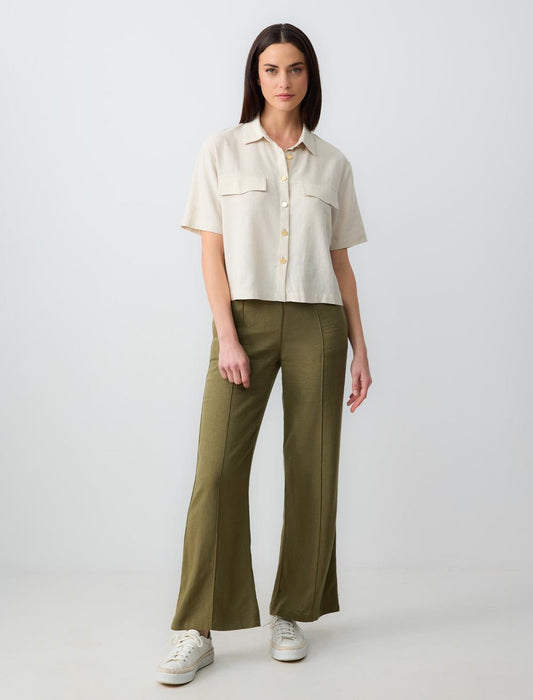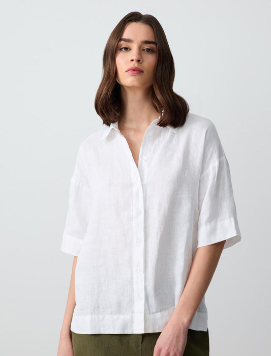 Straight Cut Short Sleeve Woven Linen Shirt