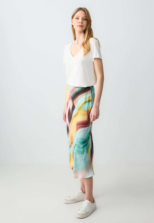 Regular Fit High Waist Midi Length Woven Multi-Coloured Skirt