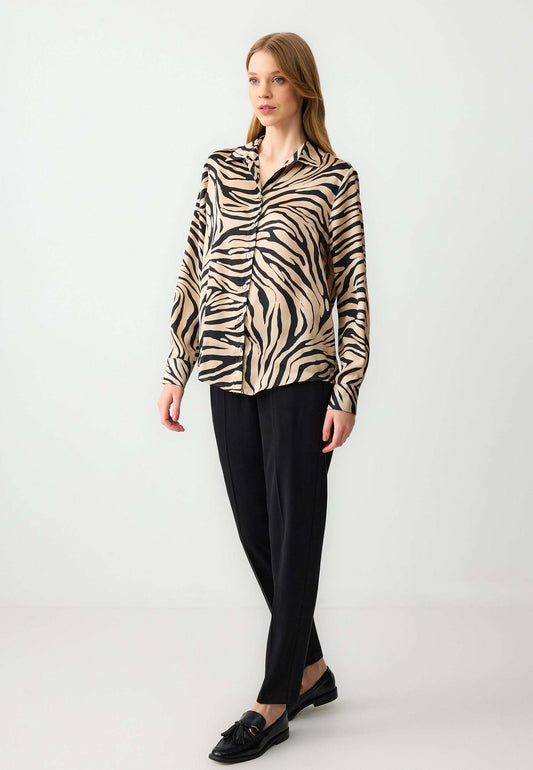 Relaxed Fit Wide Leg Patterned Satin Pants