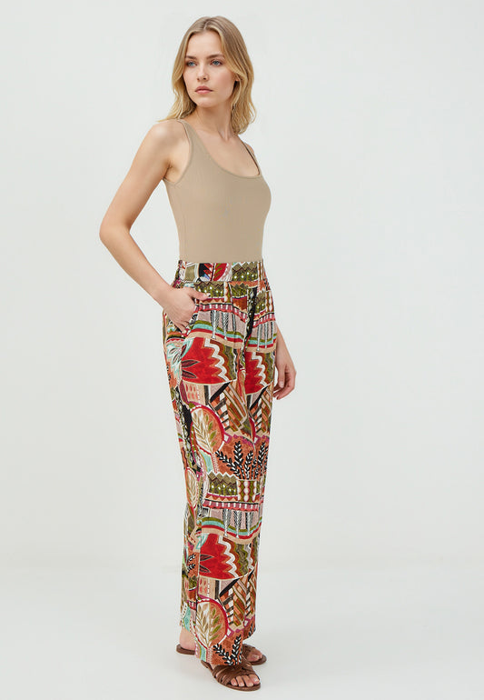 Regular Waist Wide Leg Straight Cut Woven Trousers