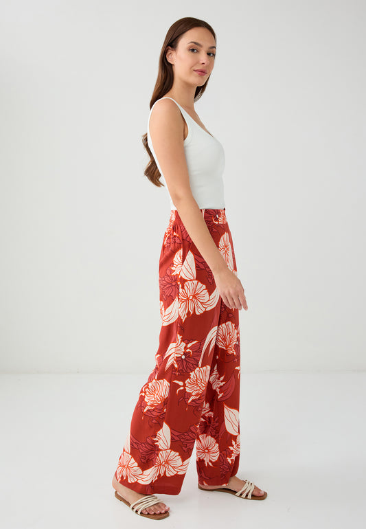 100% Linen Relaxed Fit High-Waisted Wide-Leg Pants
