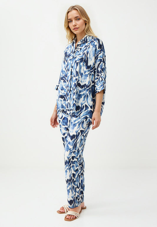 Loose Fit Dark Blue Woven Trousers