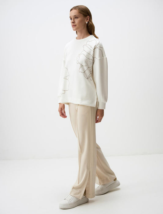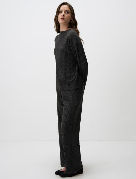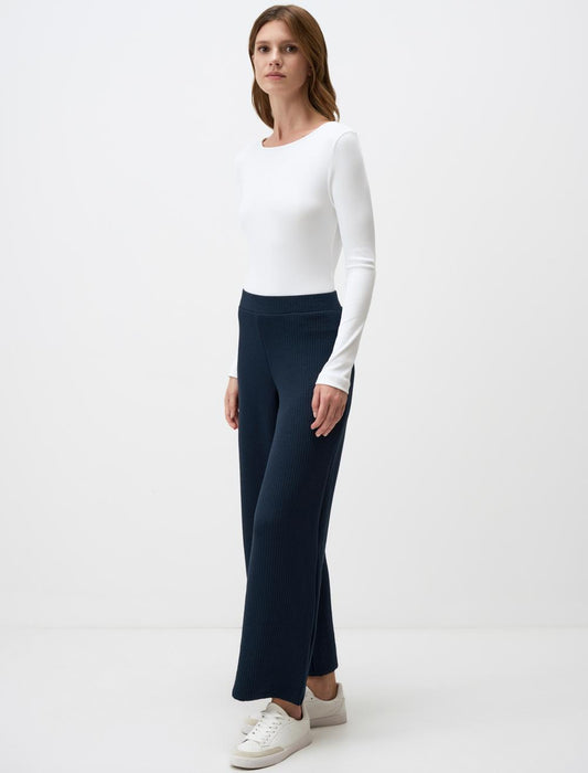 Regular Waist Straight Cut Knitwear Pants with Elasticated Waist