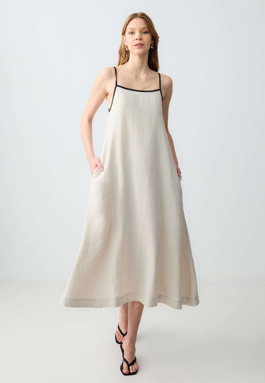 Regular Fit V-Neck Woven Ecru Dress