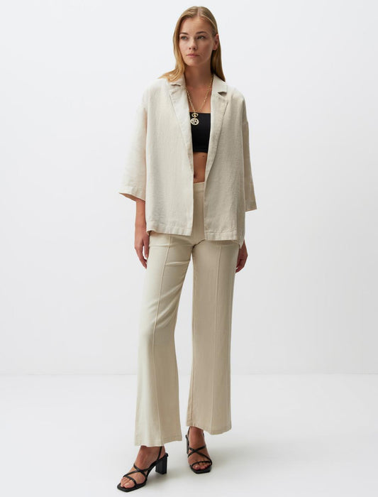Straight Cut Long Sleeve Linen Jacket