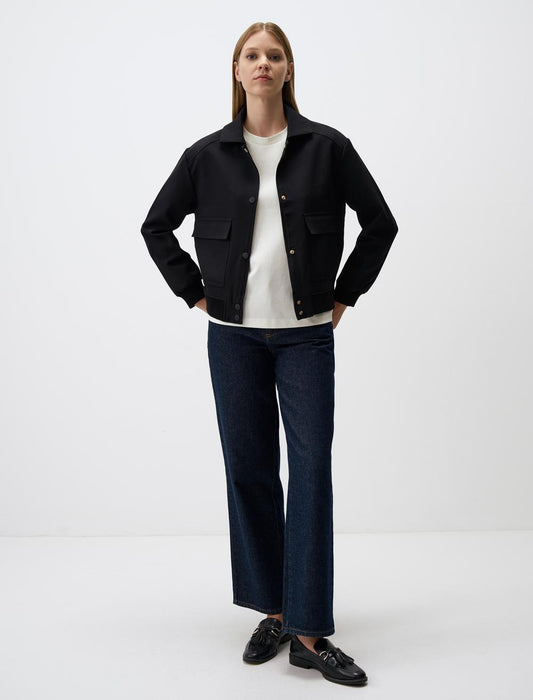 Straight Cut Pocket Detail Zippered Modal Jacket