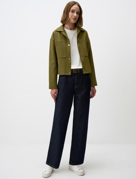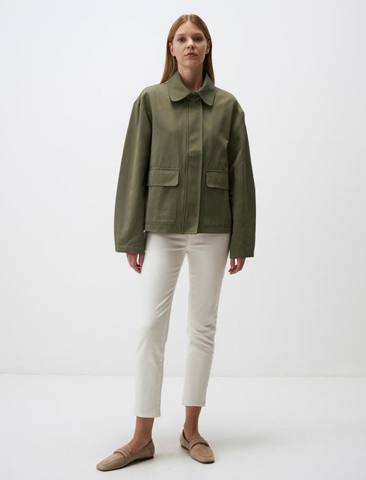 Straight Cut Long Sleeve Gabardine Jacket