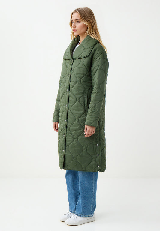 Khaki Woven Puffer Coat