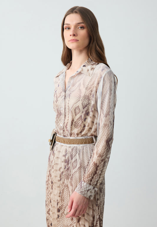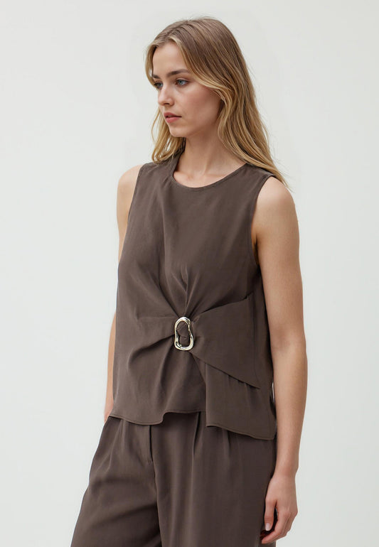 Regular Fit Crew Neck Woven Biiter Brown Blouse
