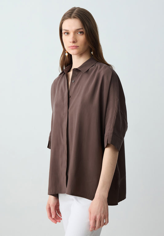 Loose Fit Shirt Collar Woven Biiter Brown Shirt