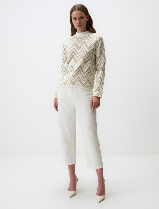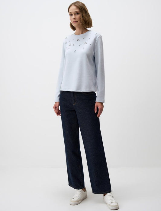 Crew-Neck Knitted Pullover with Shiny Stone Detail