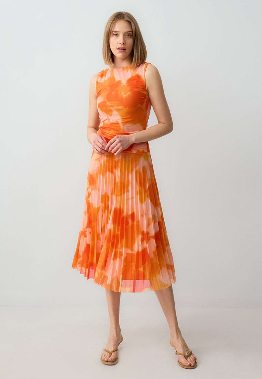 Straight Cut Regular Waist Pleated Knitted Midi Skirt