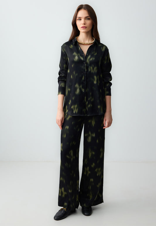 Long Sleeved Patterned Satin Shirt