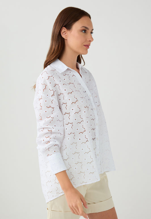 Loose Fit Shirt Collar Woven White Shirt