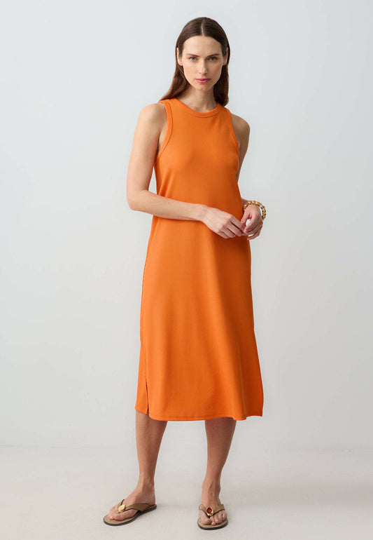 Relaxed Fit Sleeveless Crew-Neck Knitted Midi Dress