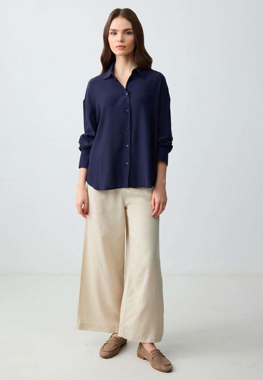 Loose fit Shirt Collar Woven Dark Blue Shirt