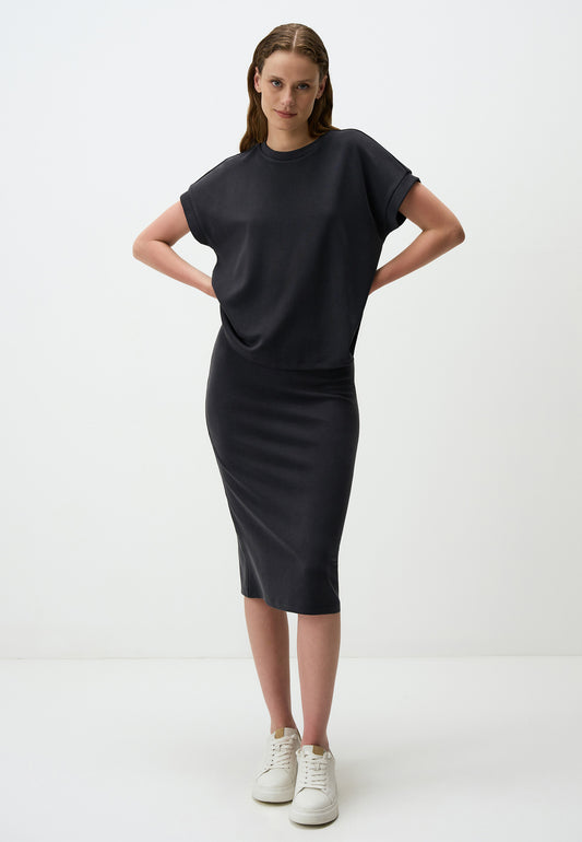 Straight Cut Regular Waist Pleated Knitted Midi Skirt