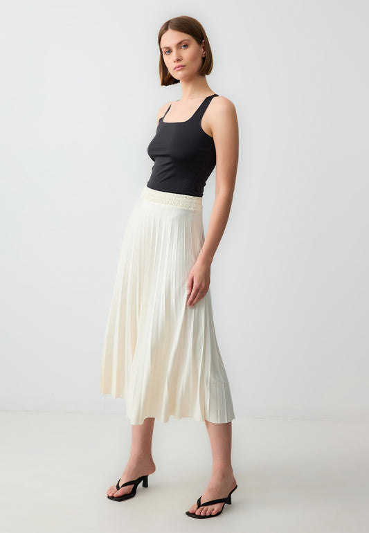 Regular Waist Elastic Pleated Knitted Midi Skirt