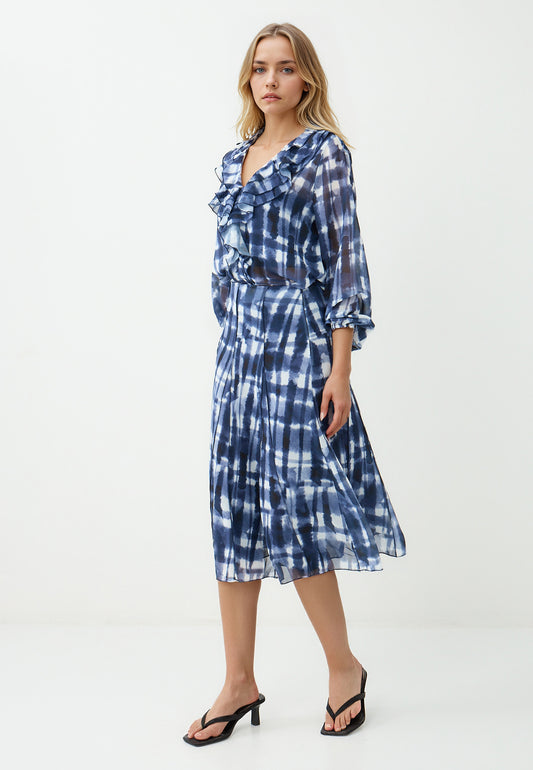 Regular Fit High Waist Midi Length Woven Multi-Coloured Skirt