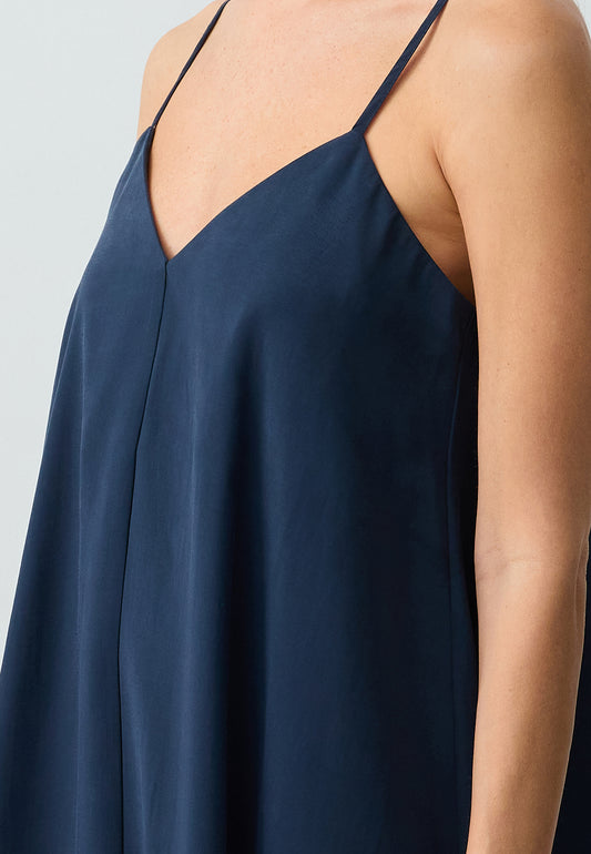 Loose Fit V-Neck Spaghetti Straps Midi Dark Blue Woven Dress