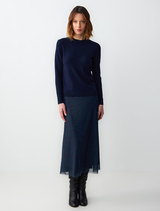 Crew Neck Slim Fit Long Sleeve Midi Dress