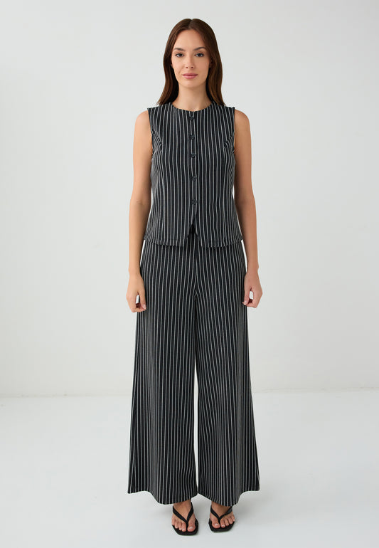 Line Patterned High Waist Relaxed Fit Pants