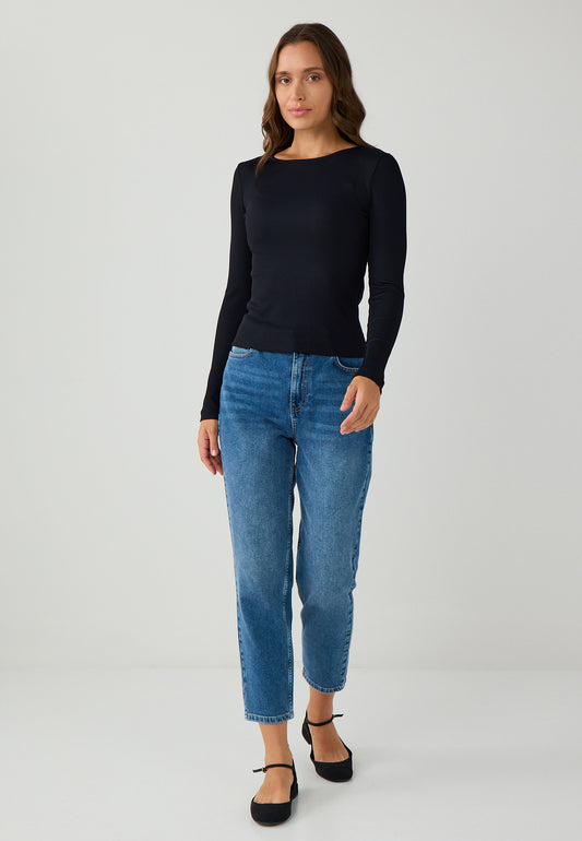 Slim Fit Off-the-shoulder Knitted Black Blouse
