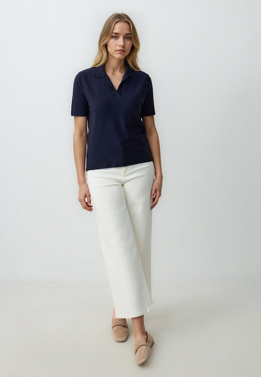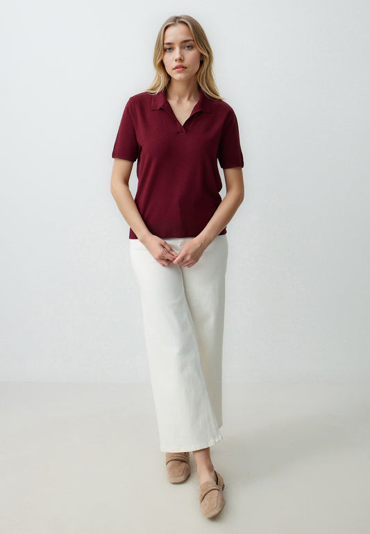 Straight Cut Polo Collar Short Sleeve Sweater T-Shirt
