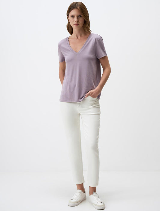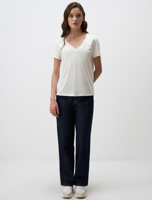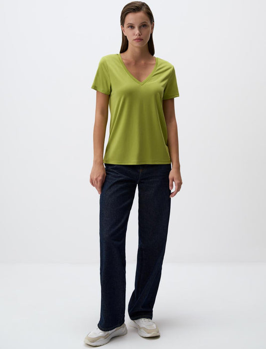 Straight Fit V-Neck Short Sleeved Basic T-Shirt